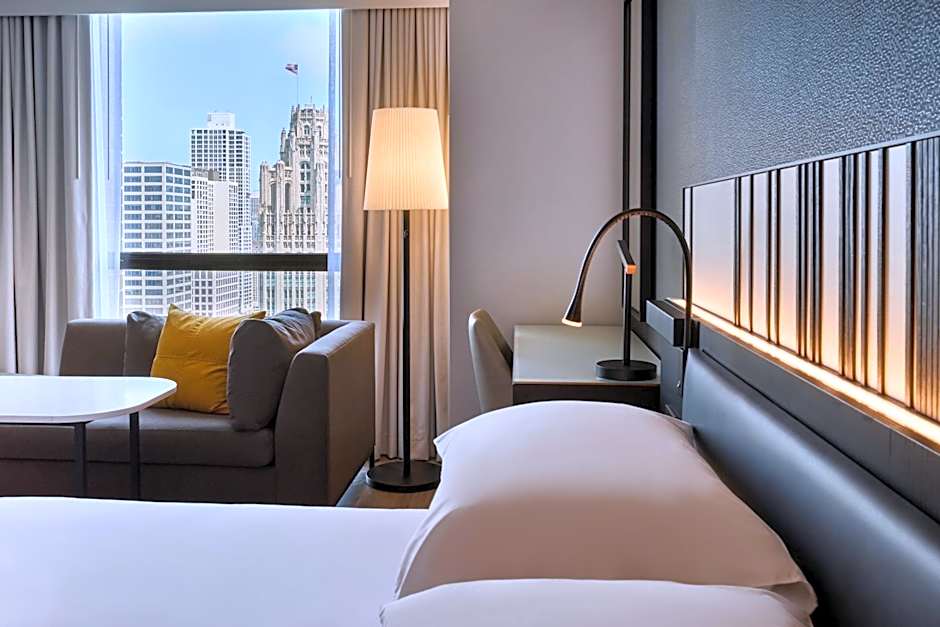 Featuring views of Downtown Chicago from floors 20 or above, this room offers a seating area.