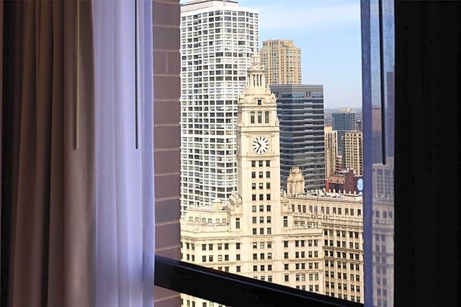This room offers scenic views of either downtown Chicago, the Chicago River or Lake Michigan.